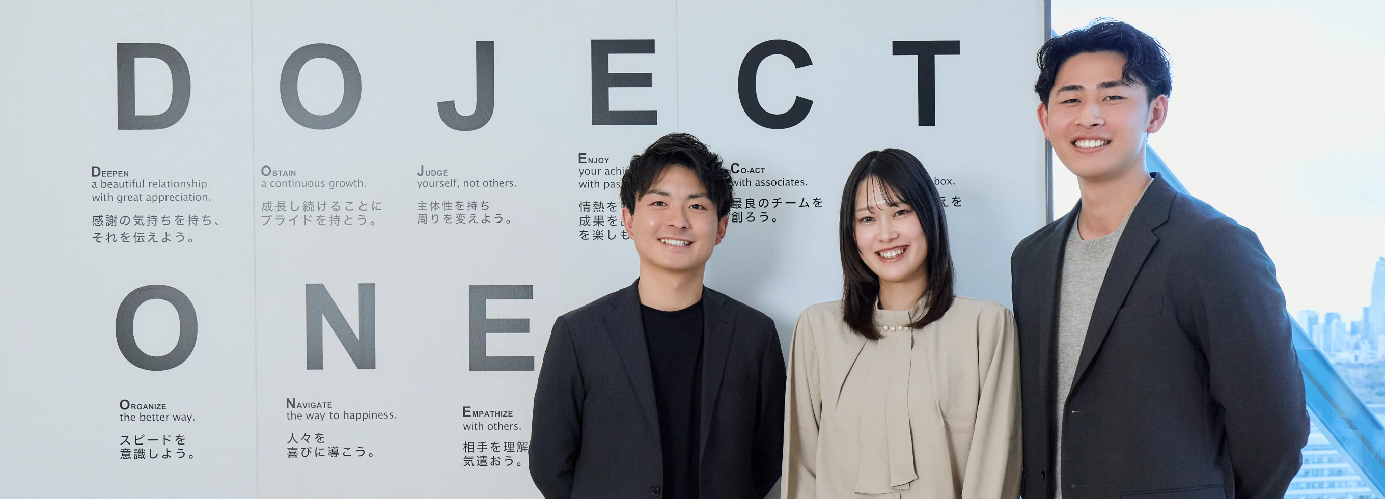 新卒でジェクトワンに入社した3人が、ジェクトワンの魅力やカルチャー、不動産営業としてのリアルを語り合います。